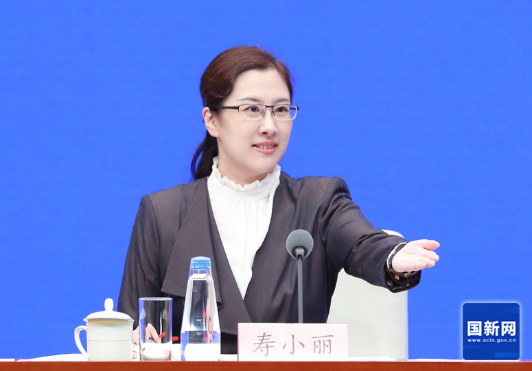 图为国务院新闻办新闻局局长、新闻发言人寿小丽邀请记者提问。(栾海军 摄)