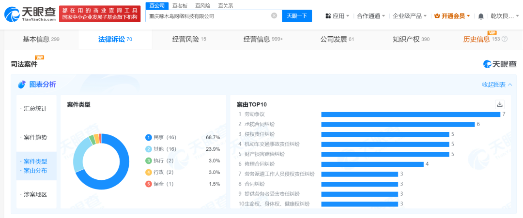 若事前通过天眼查“司法案件”功能检索,可发现该企业关联的重庆啄木鸟网络科技有限公司因修理合同纠纷、合同纠纷、承揽合同纠纷等被多次起诉。更值得警惕的是,天眼查“天眼风险”信息显示,其母公司通过直接或间接持股控制全国100余家企业,形成庞大的维修网络,但多家子公司因服务质量问题被列入经营异常名录。