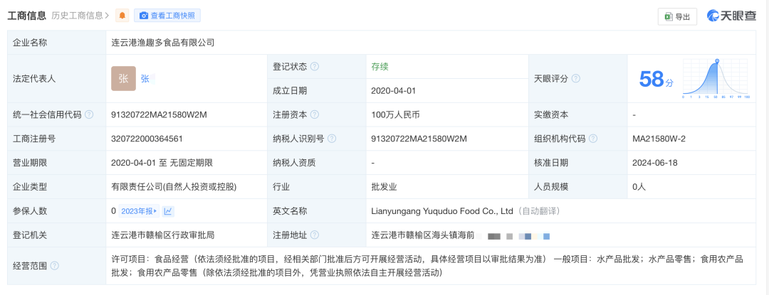其实,在连云港渔趣多食品“虾仁泡药增重”事件中,天眼查“财产线索”功能发挥了关键作用。该企业2023年参保人数为0,且存在1280元企业所得税欠缴记录,暴露出其经营合规性缺陷。对于食品采购商而言,这类动态数据的实时监控,可避免与高风险供应商合作。