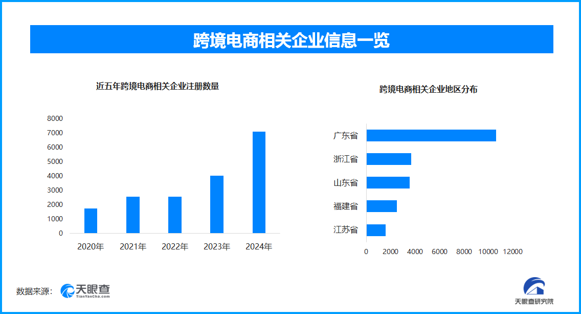 天眼查数据显示,现存跨境电商相关企业3.3万余家,2025年1月到现在新增注册相关企业1万余家,与2024年同期相比增长194.1%;