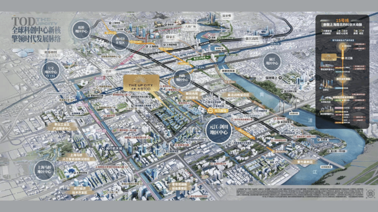 也正是凭借15号线和虹梅路高架,项目北接漕河泾科创园和新晋高水平科学策源地华泾,南接大零号湾,