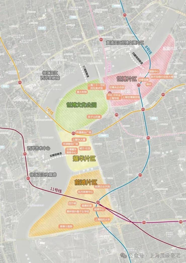 后滩九宫格北接世博文化公园、南邻前滩,西面隔黄浦江就是徐汇滨江,区位非常好,且是黄浦江核心段硕果仅存的滨江住宅区。