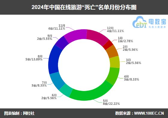 一、全年在线日,“一带一路”TOP10影响力社会智库网经社电子商务研究中心联合网经社移动出行台发布《2024在线旅游“死亡”名单》。全年共36家,分别是童子军户外网、如影旅行网、宜游宝、宇澳翔、我要免费游、找我游、大象民宿、去兜兜、客栈通、927旅游网、结伴去旅行、玩转彩云、奥腾维、轻舟旅券、米胖旅游网、一家民宿、旅行管家、点游出行、驴尾巴旅游网、上海鹰腾、理途旅游、澳乐网、哎呀海洋、iTrip爱去自由网、盛美网络、去西藏、坐享其成、旅花花、麦飞机、紫牛旅行、悦游旅游网、丫丫旅途网、做客旅行、旅惠、驴妈妈旅游、途遥旅行网。