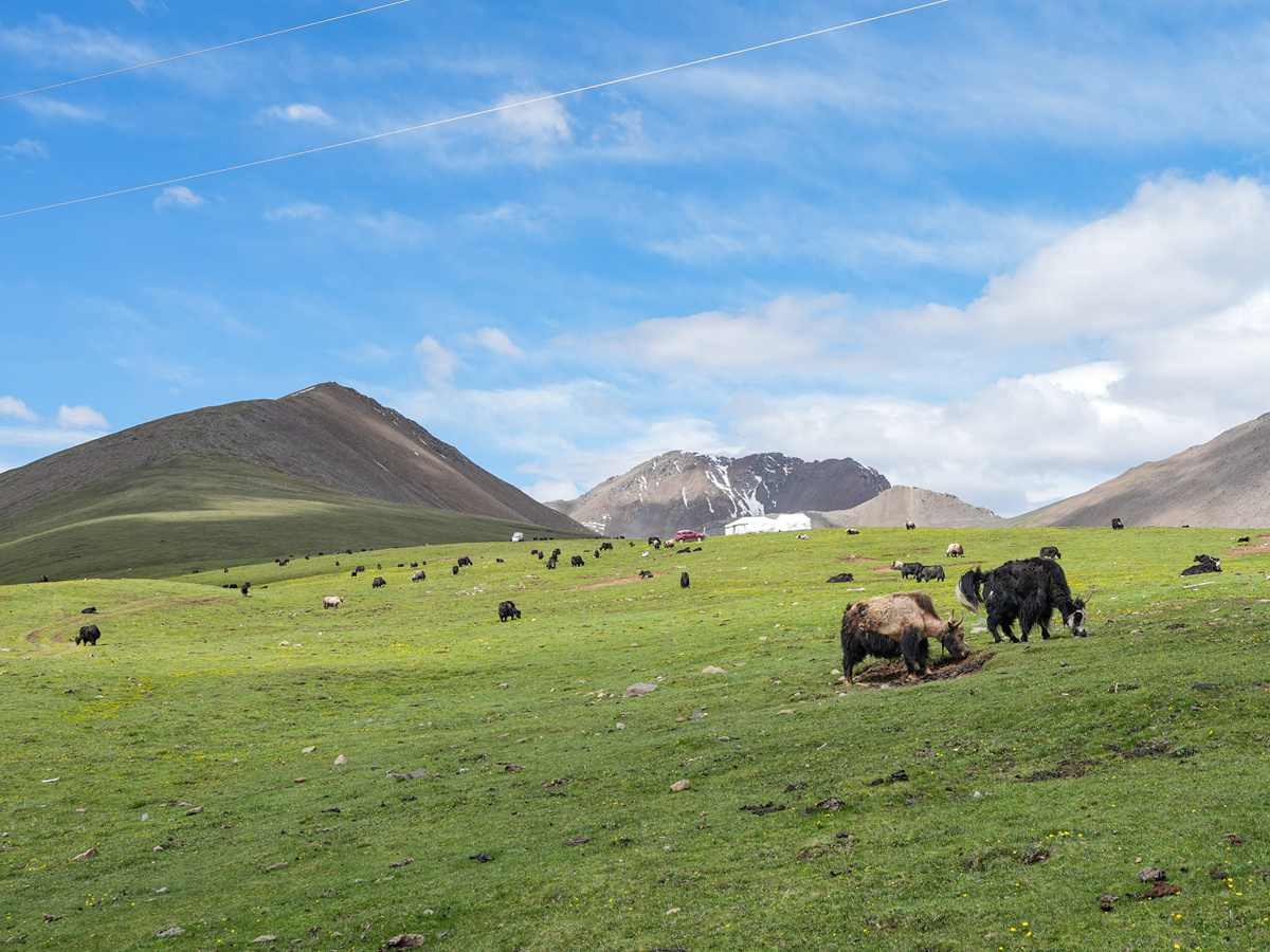 我们注意到,不光尼美多吉家有车,不远处其他牧民的帐篷外亦停有小汽车。“80后”尼美多吉说起生活的变化信手拈来:“上世纪90年代我们都是骑马放牧;15年前土路修好后改骑摩托;近年来有了柏油路,牧民们陆续购买了汽车。”