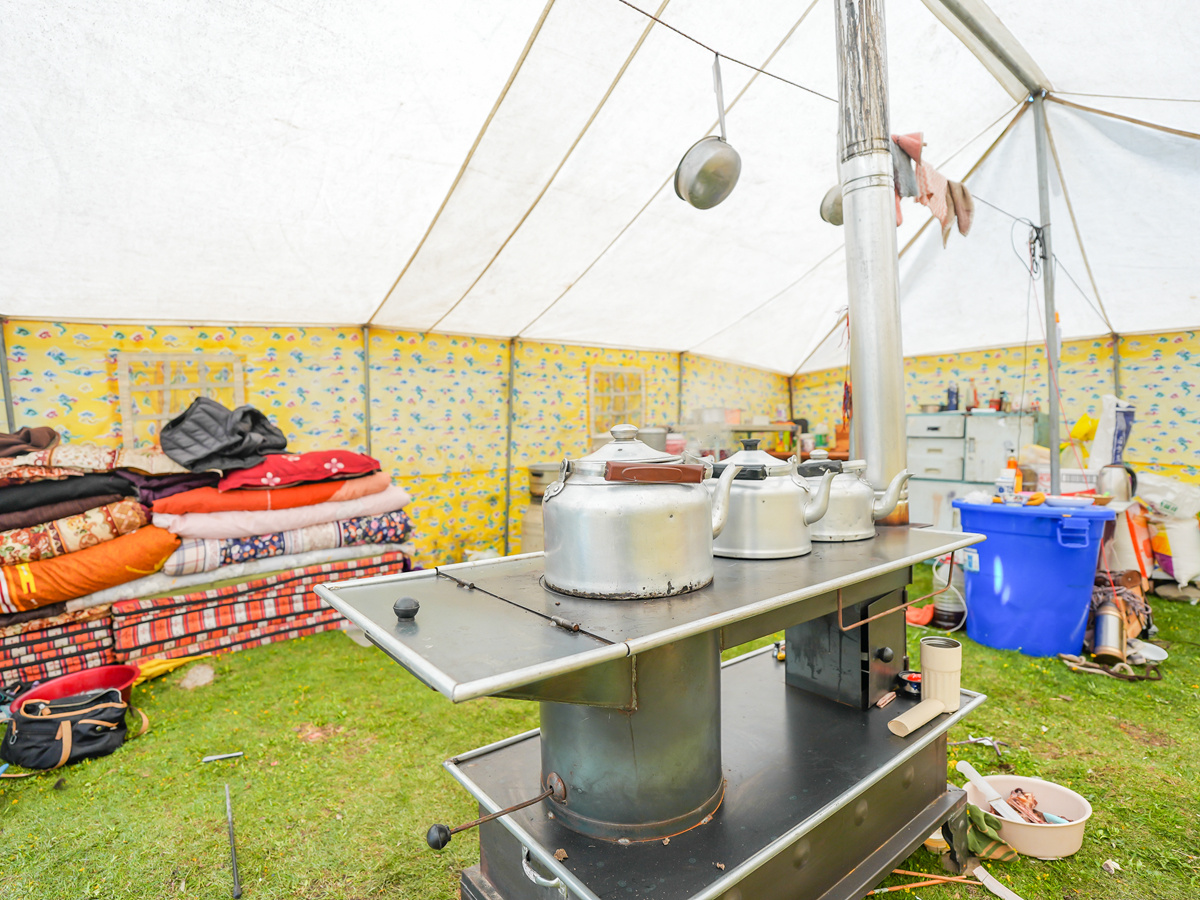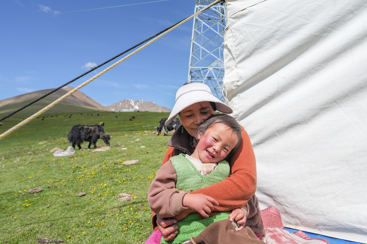 走进尼美多吉家的帐篷,生活气息扑面而来——干牛粪烧得火炉正旺,高压锅、各种厨具和酥油茶碗整齐摆放,碗里还有些未捏好的糌粑。见有远客来,尼美多吉的妻子卓玛荣木连忙端出热气腾腾的酥油茶,3岁的小儿子尼美索郎不怕生,主动跟我们分享起了新玩具。