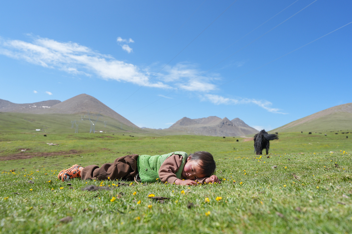 听见聊到了哥哥,尼美索郎跑来钻进妈妈怀里,轻蹙着眉头试图加入我们的谈话。卓玛荣木捧起他晒红的小脸蛋说:“等你再大点,也会送你去学习知识哟!”