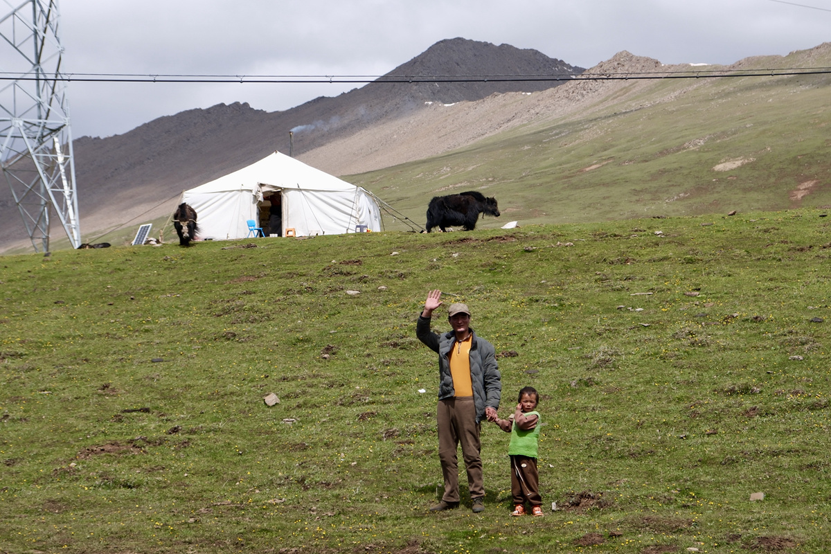 当车辆停靠在路边时,43岁的尼美多吉牵着小儿子尼美索郎的手,站在帐篷外向我们张望,旁边有只黑色藏獒正慵懒地晒着太阳,远远望去像一头掉队的小牦牛。