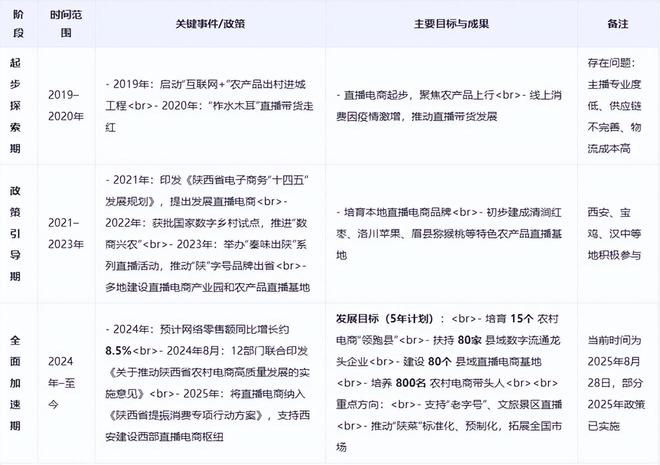 陕西省直播电商发展路径清晰,经历了从初步探索到政策引导,再到全面加速的演进过程。