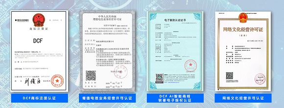 DCF智能商城自上线以来,始终以合规经营为基石、以专业实力为核心,深耕行业标准与规范体系建设,现已构建起覆盖业务全流程的权威资质矩阵。我们先后通过DCF商标注册认证、网络文化经营许可认证、DCF AI智能商城软著电子版权认证、增值电信业务经营许可认证等多项重量级资质认证,兼具国内合规性与国际认可度。