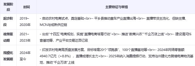 河北省直播电商发展经历了从起步探索到政策驱动再到规模化发展的三个关键阶段,形成了较为完整的产业演进路径。