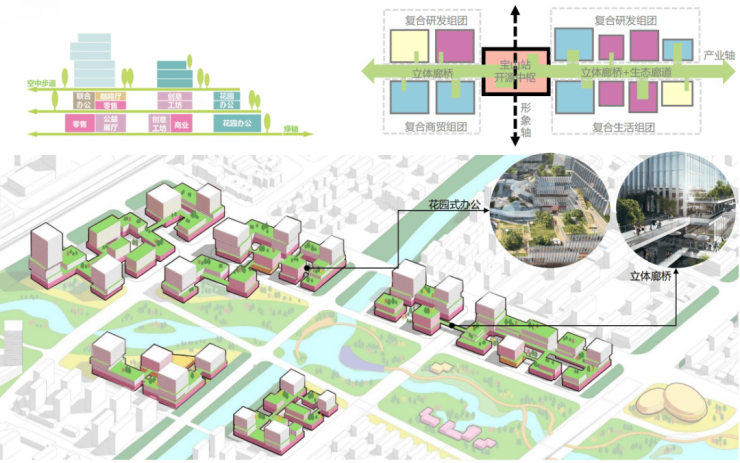 这是前所未有的大规模整体更新,通过交通枢纽、立体街区、花园办公、生态住区等模式的建构,激活整个片区的热度和活力。